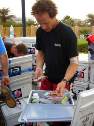 We all sat around and talked about the day and the race and of course everybody congratulated everybody on a job well done. The feeling in the camp was one I wish we could reproduce. The camaraderie and teamwork was like no other I had ever seen. There wasn’t a single person at the finish that did it alone and there were so many thanks to hand out. Spice had been on her own adventure of sorts in Morocco so between the two of us I don’t think we ever stopped talking. We had stories for days. I couldn’t wait to hear everything she had been doing for the last two weeks so we retired to the room for a break and a very expensive can of Pringles. That night we all met for a big buffet at the hotel restaurant. In our group we had the Laroza entourage, myself and Spice, Jim and Laura Radcliff and their close friends Dennis and Zora and Gary Sparks. We ate and drank and talked well into the night. It was such a glorious moment in my life that I will never forget. I was surrounded by an amazing group of people that I consider my friends forever. We all gorged ourselves on lamb and vegetables and all sorts of stuff. Pretty soon it was time for bed and planning for the next day. I hardly slept a wink that night. The whole bed thing was killing me but the shower was awesome. — Chris [< back to main race reports page]